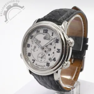 • Tarjolle hiljattain tehdashuollettu, huippu hieno ja upeilla komplikaatioilla varustettu Blancpain. Todella kaunis valkoinen taulu josta ei toimintoja puutu. Kellosta löytyy päivyri, GMT- kaksoisaika sekä mekaaninen herätys. Teräksinen kauniisti muotoiltu kuori sekä laadukas merkin oma nahkaranneke omalla soljella (kuvissa kiinni mukaan tuleva laadukas tarvike nahka omalla soljella). Koneistona toimii Blancpain 1241 -automaattikaliiperi joka koostuu kaikkiaan 407 komponentista, käyntivaraksi kellolle luvataan 40h. Kelloa seuraa molemmat laatikot, hang tagit sekä kaikki alkuperäiset paperit. Kellon paperit on leimattu kotimaisen jälleenmyyjän toimesta 10/2022. Kello on valmistunut tehtaan huollosta 5/2025 ja sille myönnetty 2 vuoden huoltotakuu.