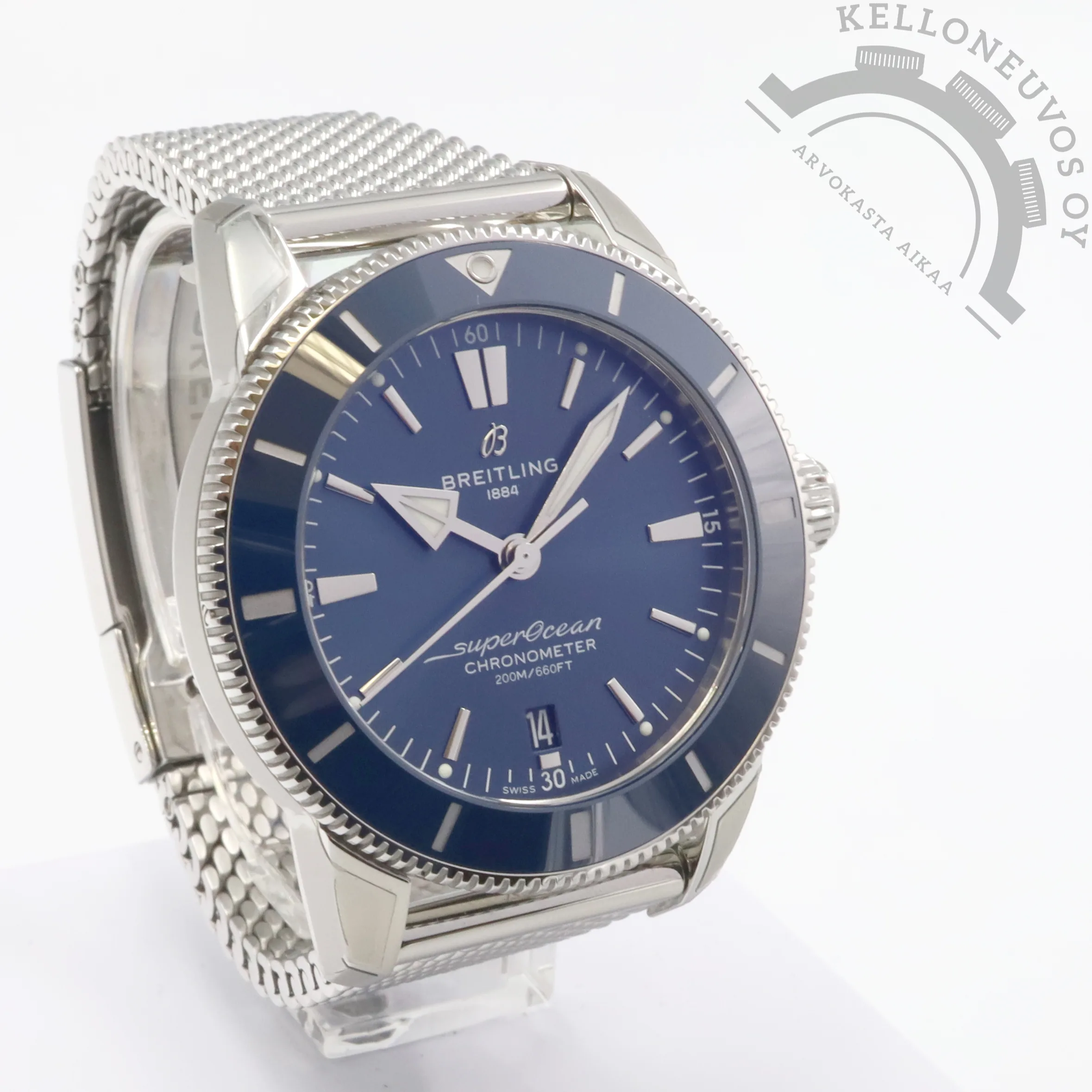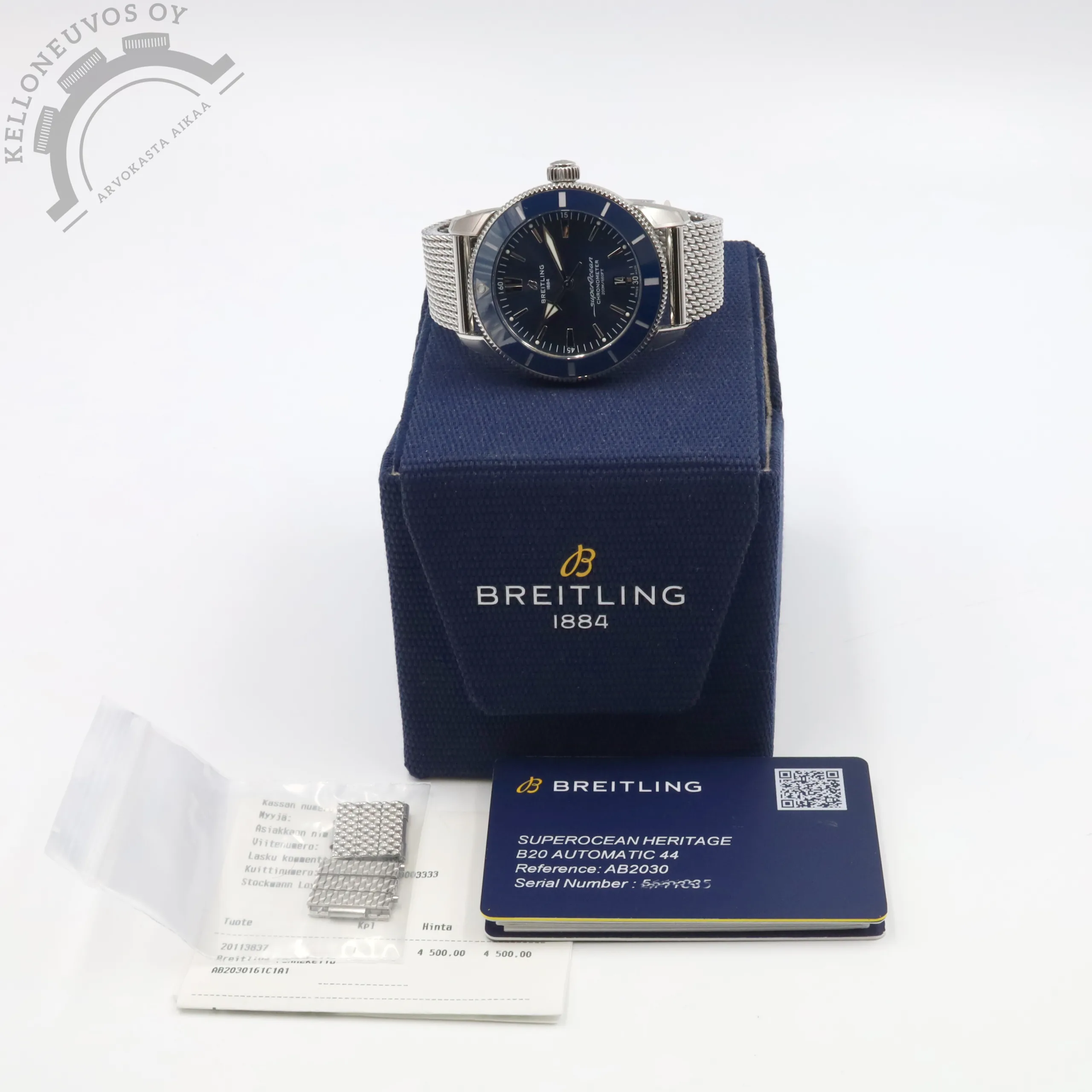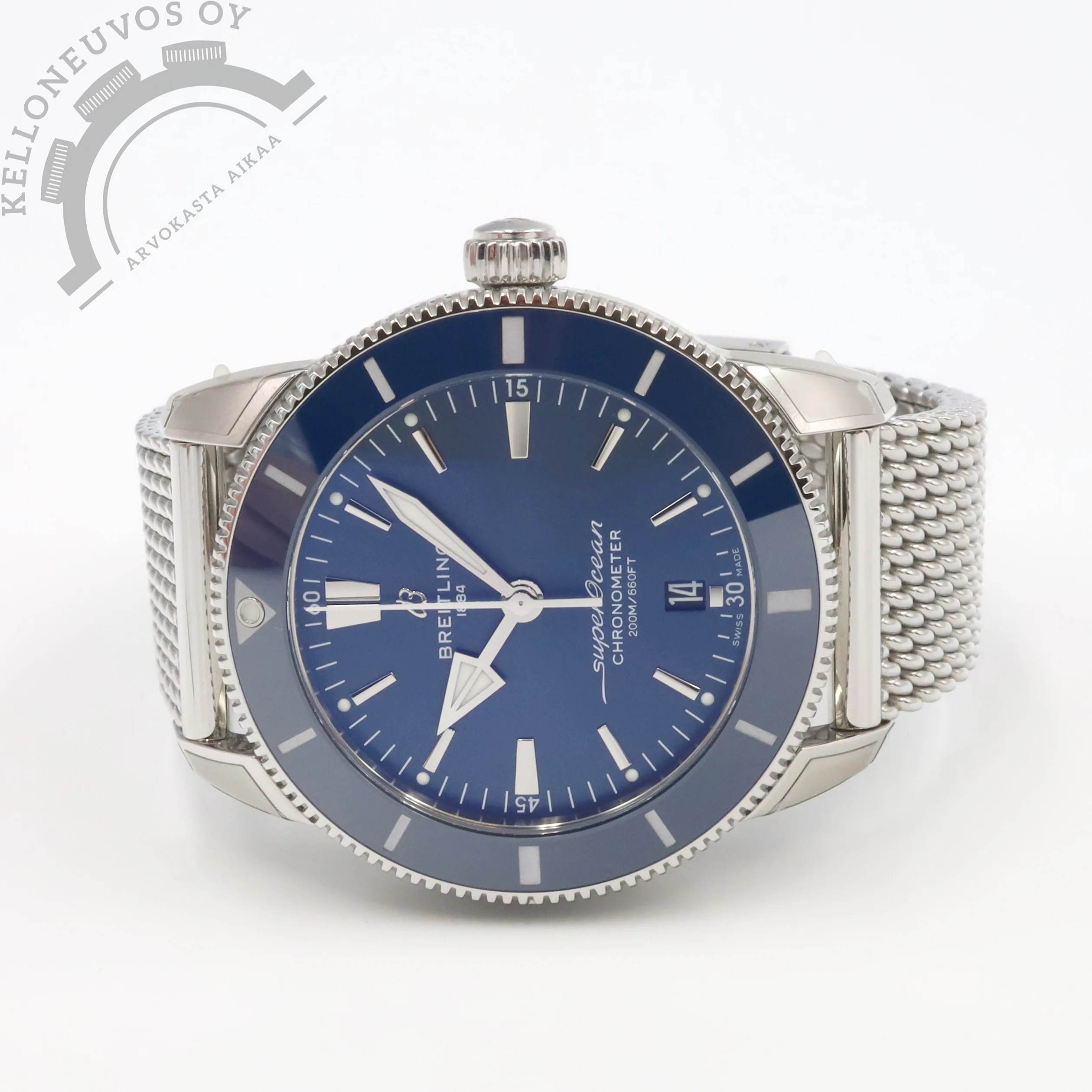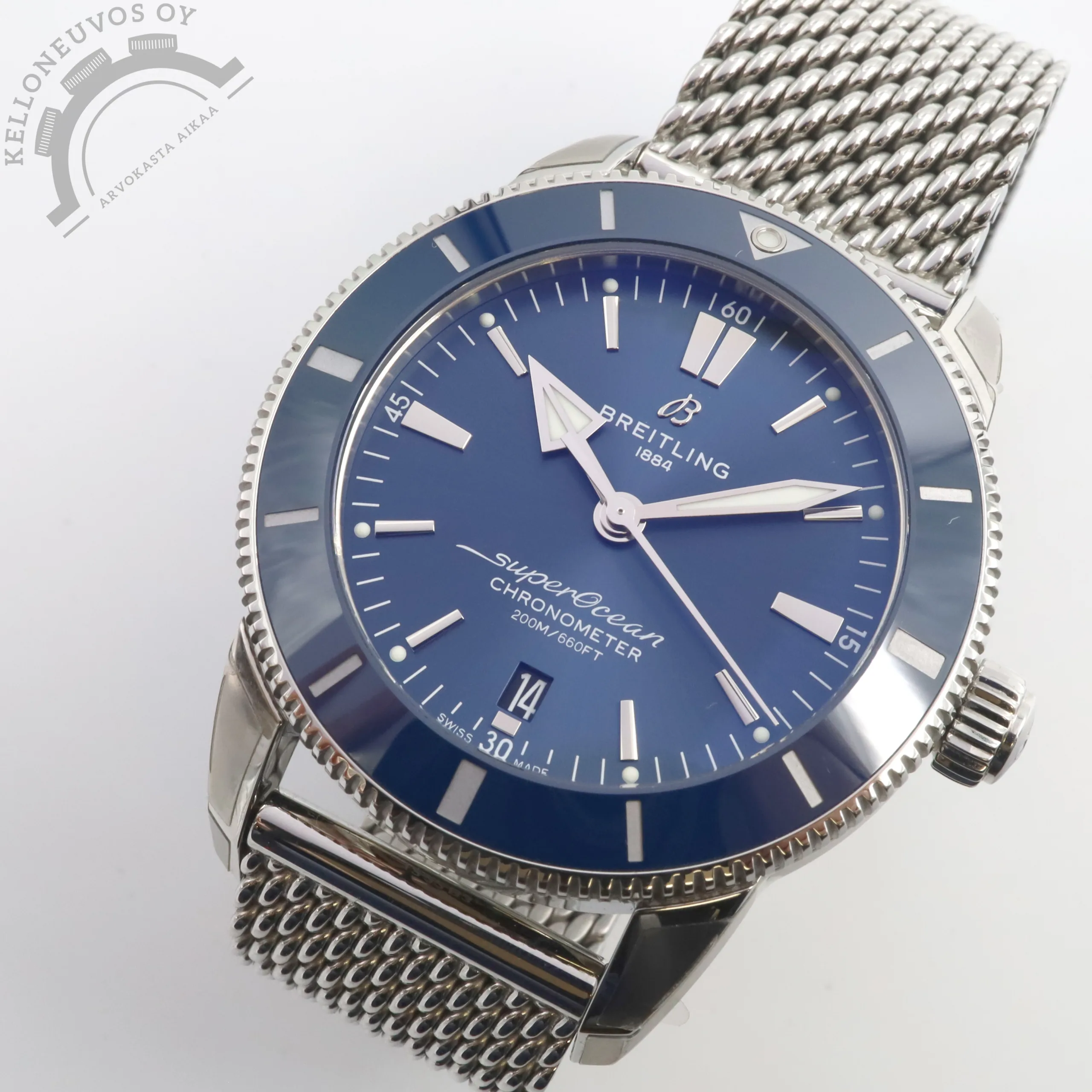Tarjolle täysin uudenveroisessa kunnossa ja edelleen muoveissa oleva Superocean 44. Selkeälukuisella sinisellä taululla josta löytyy päivyri kello kuuden kohdalle aseteltuna. Kiillotettu teräksinen kuori jossa edelleen tehtaan muovit suojana, sininen keraaminen kehä sekä safiirilasi. Kokonaisuuden kruunaa Breitlingin laadukas Mesh -ranneke. Teräksisen takakannen alla tikkaa tarkasti Breitlingin oma B20 -automaattikoneisto jossa 70h käyntivara. Täys setti ostokuittia myöden. Kellon elektroninen takuukortti on aktivoitu 11/2024. Kellon suositushinta uutena 6000e joten tästä nyt käytännössä uusi kello erittäin edulliseen hintaan.
