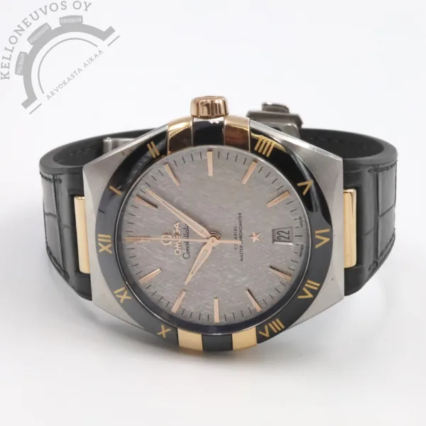 Tarjolle todella upea sekä tyylikäs Constellation. Tajuttoman upea silkkikuvioitu rodiuminharmaa taulu jossa päivyri aseteltuna kello kuuden kohdalle. Osoittimet, Omega-logo, Constellation-tähti sekä indeksit ovat kaikki 18K Sedna -kultaa. Teräksinen kuori jossa kiillotettu keraaminen musta kehä jossa Ceragold -tekniikalla toteutetut roomalaiset numerot. Kokonaisuuden kruunaa Omegan laadukas harmaa nahkapäällysteinen kumiranneke omalla soljella. Koneistona toimii safiirisen takakannen läpi näkyvissä oleva Omega 8900 -automaatti jossa 60h käyntivara. Full set, kellon takuukortti on päivätty kotimaisen jälleenmyyjän toimesta 9/2022. Kellon ovh. 11 500e.
